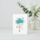 Clé d'or antique aux roses turquoise tendance décorée de feuilles d'or blanc et de perles rose et bleu. Couleur tendance. Rose turquoise. Blanc doré. Tiffany bleu.