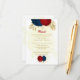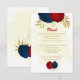 Carte D'accompagnement rouge & bleu marine fleurs or feuille mariage
