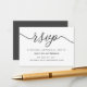 Personnalisez facilement ces cartes RSVP avec votre propre libellé à l'aide de la section "personnaliser ce modèle" ou cliquez sur le lien "customiser plus loin" pour modifier les styles, les couleurs et la mise en page de la police en suite. Il y a également de la place au dos de la carte pour ajouter plus de texte ou une photo de votre choix.