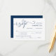 Il s'agit de la belle carte de boîtier RSVP romantique moderne (Répond), en police bleu marine, où vous pouvez modifier, modifier la couleur et le format selon vos besoins de conception, avec options de repas, sièges réservés, nombre de participants et option de demande de chanson. #TeeshaDerrick