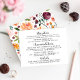 Les cartes d'information des mariages comprennent la réception, l'hébergement pour deux hôtels et les informations sur le site Internet des mariages. Le dos de la carte présente un motif floral de belles fleurs d'aquarelle, y compris les roses d'été et d'automne, dahlias, des fleurs de pivoines et de la verdure, dans une magnifique palette automnale de rouge bordeaux, jaune doré, orange pêche, rose roux et tons verts.