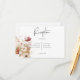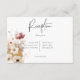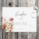 Célébrez la beauté de la chute avec notre carte de réception de mariage rustique et enchanteresse. Contre un arrière - plan blanc immaculé, un morceau doux et rêveur de fleurs sauvages bordeaux, rouge vif et rose mauve, associé à de délicates marguerites blanches, forme une scène pittoresque de romance et d'élégance. L'ajout de verdure dorée à l'orge ajoute une touche de chaleur et de richesse au design, créant un mélange de couleurs captivant. Cette carte exsumera l'essence d'un paysage de chute rustique, capturant le charme de la beauté de la nature dans des traits d'aquarelle doux. Les fleurs sauvages symbolisent la floraison de l'amour, tandis que les marguerites représentent la pureté et l'innocence. Préparez-vous à fasciner vos invités avec un design qui les transporte dans un monde enchanteur et de beauté. Les délicates teintes d'aquarelle créent une atmosphère de sérénité et de joie, faisant de votre mariage une expérience vraiment inoubliable. Préparez la scène pour une célébration de l'amour au milieu de la splendeur de la chute, et créez des souvenirs chéris qui vont dernier une vie avec ce design vraiment captivant. Il fait partie de la Rustic Red & Barley Watercolor Fleur sauvage Suite créée par Simply Farmhouse Press. Il fait partie de la Rustic Red & Barley Watercolor Fleur sauvage Suite créée par Simply Farmhouse Press.