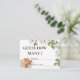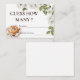 Le "Rustic Baby is Brewing Coffee Guess How Many Enclôture Card" présente un design charmant avec une illustration de tasse de café en bas à gauche et des fleurs blanches délicates en haut. Les clients sont invités à deviner le nombre de grains de café ou d'autres petits articles dans un bocal, ajoutant une activité ludique et interactive au baby shower.