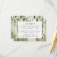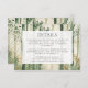 Cette carte de détails mariage comprend un arrière - plan rustique de paysage forestier aquarelle dans les tons vert et or. Le texte personnalisable en gris charbon apparaît sur un écran blanc rectangulaire. La scène boisée est répétée sur le dos de la carte.