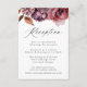 Carte de réception de mariage floral d'automne rustique avec une bordure supérieure de fleurs de chute d'aquarelle et de feuillage dans les tons bordeaux, marsala, violet, marron et orange. "Réception" est affiché dans un script de calligraphie moderne. Personnalisez les cartes de boîtier de réception mariage de automne avec vos informations de réception de mariage et le site du mariage. Conçu pour coordonner avec notre collection Rustique de mariages floraux d'automne.