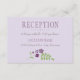 Les cartes de réception de mariage rustique chic présentent un accent floral de fleurs lilas, lavande, violet et prune violet et de feuilles botaniques verts à l'allure dessinée à la main.