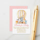 Elégant Aquarelle Moderne Bébé Animaux Hot Air Balloon Baby showers Livres Pour Baby Enclôture Card. Les bébés animaux comprennent l'éléphant, le singe, la girafe, le rhinocéros, le zèbre et le lion. Texte or et rose.