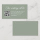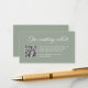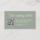Cette élégante carte de site web mariage vert sauge présente une calligraphie romantique blanche classique de style ancien ainsi qu'un code QR scannable.