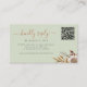 Modern rustic boho watercolor autumn fall botanical floral foliage and dried leaves kindly reply budget affordable sage green mini size RSVP card enclosure with QR code and a trendy handwriting calligraphy script in an earthy terracotta beige color palette.