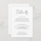 Cette carte de détails minimaliste pour mariage fournit une feuille de route claire et élégante pour l'expérience de mariage de vos invités. Les couleurs noir et blanc offrent une ambiance moderne, tandis qu'un bloc central sépare élégamment les sections pour le transport, l'hébergement et un site Internet mariage. Les clients trouveront avec style toutes les informations essentielles dont ils ont besoin pour célébrer avec vous.