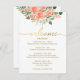 Une carte d'aquarelle rose rousse pour accueillir vos invités mariages et les informer de votre itinéraire prévu. Une carte compacte qui peut être ajoutée à un sac de faveur avec une police moderne en faux or. La fausse couleur d'or provient de l'encre de l'imprimante et n'est ni métallique, ni feuilleté.