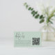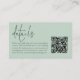 Script moderne QR Code Photo Sage Détails du Mariage. Petit et pratique à joindre à vos invitations. Invitation vos invités à consulter toutes les informations dont ils ont besoin, telles que l'hébergement et les directions via votre code QR à votre site mariage. Ce design moderne à la sauge verte a une typographie informelle en noir pour le titre principal Détails et le reste du texte que vous pouvez facilement personnaliser. Remplacez l'exemple de photo à l'arrière par votre préférence pour l'orientation du paysage ou supprimez l'exemple d'image si aucune image n'est nécessaire via l'option Modifier plus loin.
