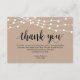 Carte D'accompagnement Script rustique, lumière à chaîne, Merci Mariage