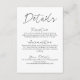Ce Script Simple pour Détails Mariage Enclôture Card est parfait pour toute personne recherchant une carte simple mais moderne noir et blanc. Vous pouvez modifier les détails ou les customiser en ajoutant vos propres graphismes ou conceptions.