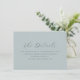 This wedding enclosure card features a minimalist design with a soft, muted teal background that exudes elegance and serenity. The layout is centered, showcasing the phrase "The Details" in an elegant cursive script font, followed by straightforward serif text guiding guests to visit a customizable website for more information. The generous spacing and balanced typography create a modern, understated look perfect for conveying essential details with clarity and style. Ideal for weddings, this card sets a calm and inviting tone, making it a sophisticated addition to any bridal suite.