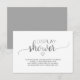 Cette carte d'invitation de douche à affichage de calligraphie argentée simple est parfaite pour une douche de mariée élégante. Le design scintillant argenté présente une typographie chic et un cœur métallique luxueux.