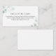 Personnalisez cette carte d'accompagnement selon vos besoins ! Idéal pour les détails, les informations d'enregistrement, les hébergements d'hôtel, etc. Comprend des feuilles d'eucalyptus aquarelles. Parfait pour une baby shower ou une fête de mariage