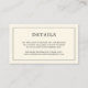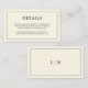 Carte de supplément de mariage simple et élégante avec un design moderne et élégant avec vos détails entourés d'une fine bordure et votre monogramme au dos. Tous les éléments de conception sont en noir sur un fond ivoire / crème neutre et peuvent être modifiés dans l'outil d'édition de conception. Un design chic et élégant qui convient parfaitement à un couple minimaliste. Utilisez ces cartes de supplément pour fournir des directions et d'autres informations importantes que vos invités doivent connaître, telles que les hébergements d'hôtel, le stationnement, les informations de navette, etc.