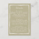 Ajoutez une touche de charme et de clarté à votre suite de mariages avec cette carte de boîtier de détails magnifiquement coordonnée. Conçu avec un arrière - plan vert d'inspiration nature, il est doté d'une bordure blanche dessinée à la main et d'un élégant script de style manuscrit pour une atmosphère douce et organique. Parfait pour inclure des informations de voyage, hébergement, itinéraire ou des notes spéciales pour vos invités. Un joli complément à votre papeterie mariage lunatique Ljubljana, cette carte est entièrement personnalisable en ligne sans aucune expérience de conception nécessaire.