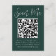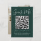 Faites en sorte qu'il soit facile pour les invités de RSVP à votre mariage ou événement avec ces cartes RSVP de mariage modernes avec code QR. Les élégantes cartes d'enceinte de mariage affichent "Scan Me" dans un script blanc fantaisiste avec un arrière - plan vert foncé. Personnalisez la carte avec votre date RSVP, le site Web du mariage et les instructions pour les invités utilisant le modèle texte fourni. L'arrière de la carte affiche votre photo de fiançailles vertical préférée. Conçu pour coordonner avec notre collection Simple Script mariage.
