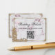 Une carte d'adresse de site Web de mariage très élégante avec un code QR pour vous de personnaliser avec votre propre URL, et l'option de l'inclure aussi en entier (au verso de la carte). Le design est composé d'un arrière - plan en marbre rose et blanc, avec un cadre en or métallique encastré de dentelle d'or et de perles dans un coin. Gardez vos invités mariages à jour avec toute modification de dernière minute à votre grand jour, ou avec toute autre information importante que vous aimeriez qu'ils connaissent en les renvoyant facilement à votre site Web avec cette carte de boîtier sophistiquée et élégante.