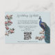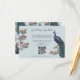 Ce site d'oiseaux moderne QR Code Enclume Card présente des fleurs d'oiseaux paons et de magnolias dessinées à la main, bleues et turquoises, ainsi qu'un élégant motif à l'arrière. Tout le texte est modifiable.