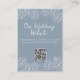 Elégante carte d'information du site web bohème fleuri mariage avec un code QR. Beau dessin vintage de pivoines blanches sur un arrière - plan bleu poussiéreux avec un script blanc et des lettres audacieuses avec un dessin bleu poussiéreux répété de pivoines encadrant votre photo romantique à l'arrière. Conservez les textes génériques ou ajoutez votre propre texte personnalisé. Design minimaliste avec une ambiance boho romantique et rustique. Si vous avez besoin d'aide pour apporter des changements, envoyez-moi un courriel à desigsbykatz@gmail.com et je serai heureux de vous aider.