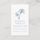 Un site Web mariage facilite le partage de tous les détails importants de votre journée spéciale. Cette simple carte de site web de mariage de plage tropicale blanche et bleu poussiéreux comporte une paire de palmiers en haut. Veuillez consulter la collection pour le reste de la suite de faire-part de mariage correspondante et d'autres produits correspondants.