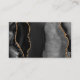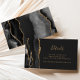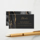 Le bord gauche de cette élégante carte d'accompagnement de site Web de mariage moderne présente une bordure d'agate à l'aquarelle noire rehaussée de paillettes dorées fausses. Le titre apparaît en écriture manuscrite dorée, avec un texte personnalisable ci-dessous en police copperplate sur un fond noir cassé. Le verso présente un motif d'agate noir et or assorti.