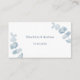 Personnalisez et ajoutez vos noms, URL du site mariage pour votre propre code QR et votre texte. Un arrière - plan blanc, un texte bleu. Décoré de sprigs d'eucalyptus bleus poussiéreux, tiges.