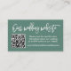Script De Brosse Moderne. Carte de boîtier minimaliste de site Web Mariage simple avec votre code QR. Photo De Retour. Vert eucalyptus