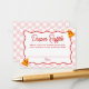 Add a fun, coordinated touch to your baby shower with this “Slice, Slice, Baby” diaper raffle enclosure card, designed to match your pizza-themed celebration. The card features a handwritten red script reading “Diaper Raffle,” framed by a red wavy border and set against a soft pink checkerboard background. Cute pizza slice illustrations with heart-shaped pepperoni accent the design, tying in perfectly with the pizza theme. The card includes a clear prompt inviting guests to bring a pack of diapers in any size for a chance to win a special prize, along with space for guests to write their name. Perfect for including with baby shower invitations, this diaper raffle card adds a fun and interactive element to a girl baby shower.
