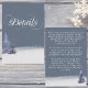 Avec un délicat mélange de tons bleu et blanc poussiéreux pour cette sensation d'hiver douillette. Cette carte de détails mariage possède d'élégants pins aquarelés et une chute de neige poussiérée, parfaite pour les mariages d'hiver.