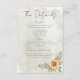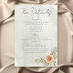 Profitez du charme d'esprit libre de l'élégance boho avec notre carte de boîtier mariage enchanteresse détails. Doté d'un arrière - plan d'aquarelle vert sauge apaisant, la pièce centrale est un coeur vert sauge foncé orné de grappes de tournesols jaunes, bruns et verts sauge. Le titre de police de script moderne et le corps du texte décontracté et propre offrent une touche contemporaine, un style parfaitement équilibré et une facilité. Ce design saisit à merveille l'essence de votre histoire d'amour, invitant vos invités à célébrer dans un cadre de beauté naturelle et de sophistication détendue. Graphiques tournesol créés par Verya Studios. Créé par Simply Farmhouse Press.