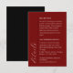 Remplissez votre papeterie mariage avec notre Spectaculaire carte Mariage noir et rouge. Doté d'un arrière - plan rouge vif sur le devant avec le texte blanc, cette carte est conçue pour séduire. L'envers contraste magnifiquement avec un arrière - plan noir élégant. Le design minimaliste et frappant est parfait pour les couples qui veulent faire un impact mémorable. De plus, le texte est entièrement personnalisable, vous permettant de personnaliser chaque détail pour correspondre à votre style de mariage unique.