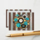 Carte D'accompagnement Steampunk Clock and Turquoise Roses on Striped