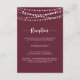 Cette corde illumine la carte d'enceinte de réception de mariage bordeaux est parfait pour un mariage rustique. Le design est orné de superbes lampes à cordes peintes à la main dans un arrière - plan bordeaux.