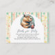 This pastel striped books for baby card features a funny capybara with bubble tea on a colorful dotted stripe background. The cheerful design makes it a perfect personalized baby shower insert.