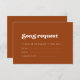 Assurez-vous d'avoir la meilleure playlist pour votre mariage avec cette carte amusante "Demande de Chanson". Il permettra à vos invités de vous indiquer quelles chansons choisir pour votre réception ou après la fête. Un thème rétro chic : adoptez ce design typographique légèrement vintage et élégant pour votre papeterie mariage, avec un thème de couleur orange brûlé, terre cuite et sucre brun. Texte, couleurs et arrière - plans entièrement personnalisables.