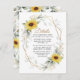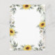 Le design présente une verdure aquarelle, des tournesols, des éléments en or imprimé et des feuilles botaniques aérés sur un cadre géométrique imprimé couleur or. Le fond est assorti d'une verdure et d'une couronne de tournesol.