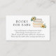 Une carte d'insertion de demande de livre pour le baby shower. Avec des tournesols, des livres et du poème : "UNE PETITE DEMANDE, NOUS ESPÉRONS NE PAS TROP DIFFICILE D'APPORTER UN LIVRE PLUTÔT QU'UNE CARTE QU'ILS VONT CHERCHER LE LIVRE, BIEN AIMÉ OU NEUF S'IL VOUS PLAÎT SIGNER L'INTÉRIEUR AVEC UN MESSAGE DE DE VOUS!"