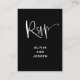 Ces cartes de boîtier modernes et élégantes en noir et blanc sont un moyen facile pour vos invités à RSVP à votre événement. Ils comprennent un code QR scannable ainsi qu'un lien vers votre site Web mariage afin que vos invités aient une façon simple de répondre. Ces cartes sont dotées d'un arrière - plan noir foncé sur le dos, avec une typographie de script à la mode blanche pour un look glamour et élégant.
