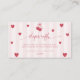 Designed to perfectly match the Sweetheart baby shower invitation, this card features soft pink tones, charming hearts, sweet cherries, and a delicate bow for a romantic coquette look.