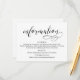 Une belle carte de Mariage de script Détails Enclôture Card. Elégante carte de typographie noir et blanc. Ajoutez un arrière - plan de couleur claire, si vous le souhaitez et customisez-le avec vos propres mots. Pour les cartes assorties et d'autres designs, veuillez consulter notre section "MARIAGE" des magasins : - https://www.zazzle.com/mintgraphicart