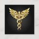 Symboles caducées polygonaux dorés sur fond noir isolé. Symbole low poly de médecine.