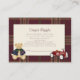 Announce your upcoming baby shower and request diaper raffle entries with these charming enclosure cards. Featuring a sweet watercolor illustration of a teddy bear in a plaid bow tie and a classic red toy car against a burgundy plaid background, these cards add a touch of rustic charm to your invitations. The simple yet elegant design is perfect for a baby boy's celebration. The text prompts guests to bring a pack for the raffle, encouraging participation and adding a fun element to your baby shower. These cards are sure to be a delightful addition to your baby shower stationery, setting a warm and inviting tone for your special event.