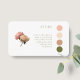 Élégance chic et moderne. Ces cartes de code vestimentaire pour tenue de mariage blanche présentent un magnifique bouquet de roses rose pâle, des polices contemporaines en vert olive et 4 couleurs complémentaires comme inspiration pour le code vestimentaire.