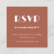 Vous recherchez la carte RSVP mariage parfaite ? Ne cherchez plus ! Notre compacte carte de mariage moderne personnalisable RSVP offre une superbe typographie de style art déco blanc qui impressionne vos invités. Avec un arrière - plan en terre cuite orange tendance, vous pouvez facilement inclure votre propre texte personnalisé pour le rendre vraiment unique. Au contraire, créez un code QR flambant neuf qui se connecte directement à votre site Web mariage pour faciliter l'accès et la commodité. Allez dans l'option "personnaliser", ajoutez l'URL de votre site mariage à la zone fournie, et un code QR sera généré sur la conception juste pour vous. Commandez maintenant et laissez les RSVP commencer à rouler !
