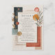 Capturez l'esprit chic et artistique d'un coucher de soleil dans le désert avec cette carte de détails moderne et abstraite. Ce design est un chef-d'œuvre de composition contemporaine, mêlant des formes géométriques épurées à des éléments botaniques organiques doux dans une palette de couleurs terreuses sophistiquée de terre cuite, d'orange brûlé et de bleu charbon profond. Ces formes audacieuses sont équilibrées par de délicates pousses d'eucalyptus vert sauge et de feuillage séché minimaliste, rehaussées de points de feuille d'or scintillants et de lignes élégantes et épurées, le tout posé sur un fond crème chaud et texturé. Cette carte est le moyen idéal de présenter élégamment toutes les informations supplémentaires dont vos invités auront besoin, telles que l'hébergement, les directions ou votre site web de mariage. Son design polyvalent et élégant en fait également un excellent choix non seulement pour une carte de détails de mariage, mais aussi comme carte de réponse, invitation à un dîner de répétition ou carte d'information pour un événement d'entreprise ou un anniversaire marquant. Don