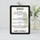 Faisant partie de la collection mariage Olive & Gold Elegance, cette carte moderne de détails blancs équilibre fonctionnalité et style raffiné. Avec un arrière - plan blanc propre, des accents géométriques dorés et une élégante illustration en feuille d'olivier, cette carte se marie parfaitement avec la suite de faire-part de mariage noirs correspondante. Idéal pour que les clients puissent remplir avec un stylo ordinaire, il offre un moyen élégant et facile de recueillir des réponses tout en maintenant la cohérence visuelle sur votre papier à lettres. Entièrement personnalisable avec vos noms et date limite RSVP.